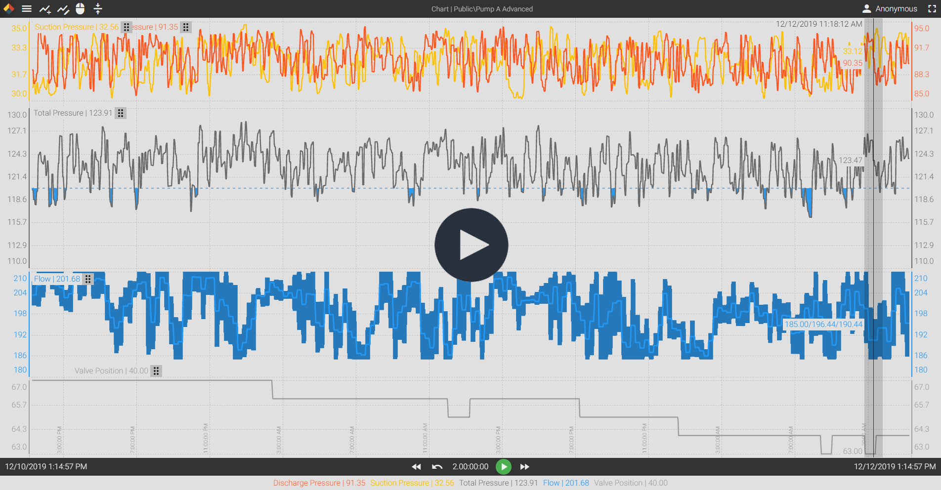 Need to find out why a piece of equipment failed or investigate an event? Use the playback feature to rewind time and watch what happened in 'real-time'. You can even interact with the application or trend chart while replaying the data.
